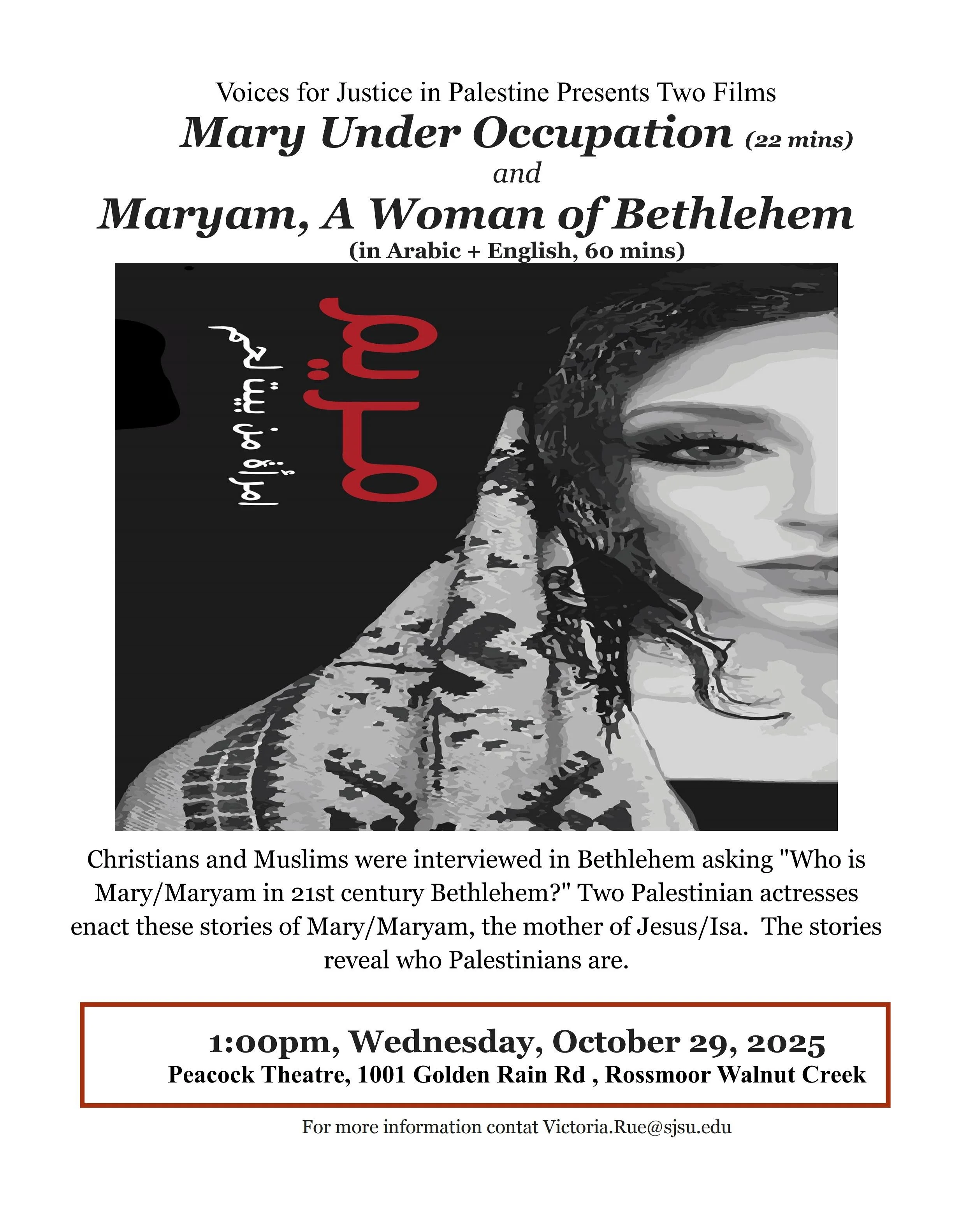 Join Voices for Justice in Palestine for a moving double feature exploring the story of Mary/Maryam — the mother of Jesus/Isa — through the lens of 21st century Bethlehem. 🌿